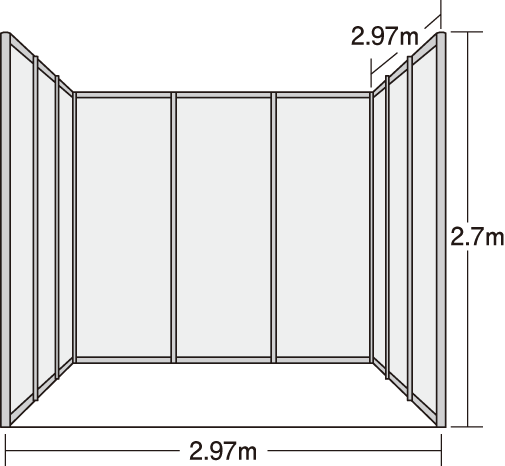 | 1-3 booth(s) | Row type only (height: up to 2.7m *up to 4m when set back 1m) |